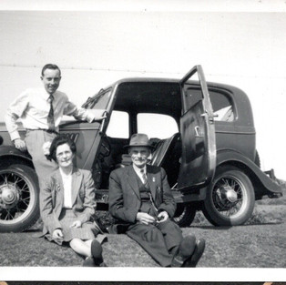 I came across a few photos of Dad and Mum from the early 1950s before they met – one of Dad at his drawing board (he was a engineering tools designer), along with some of him with friends and family (middle picture is with my gran and great-granddad).